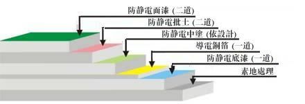 ③防靜電底漆:采用滲透性及附著力特強(qiáng)防靜電環(huán)氧底漆滾涂一道,增強(qiáng)表面附著力;